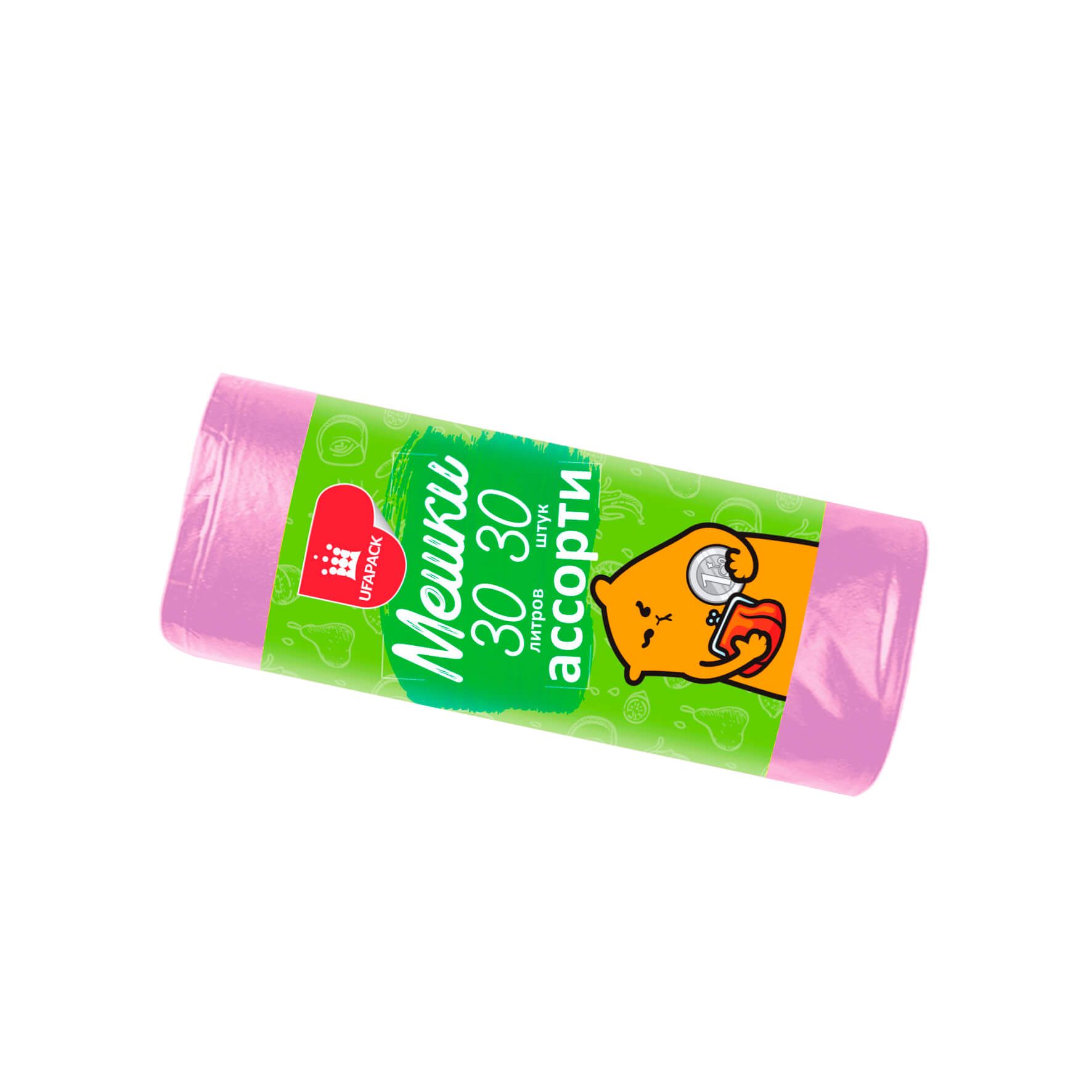 Мешки для мусора 30 л, ассорти, в рулоне 30 шт., ПНД, 5 мкм, 560х480 мм, Эконом, МЭ8716