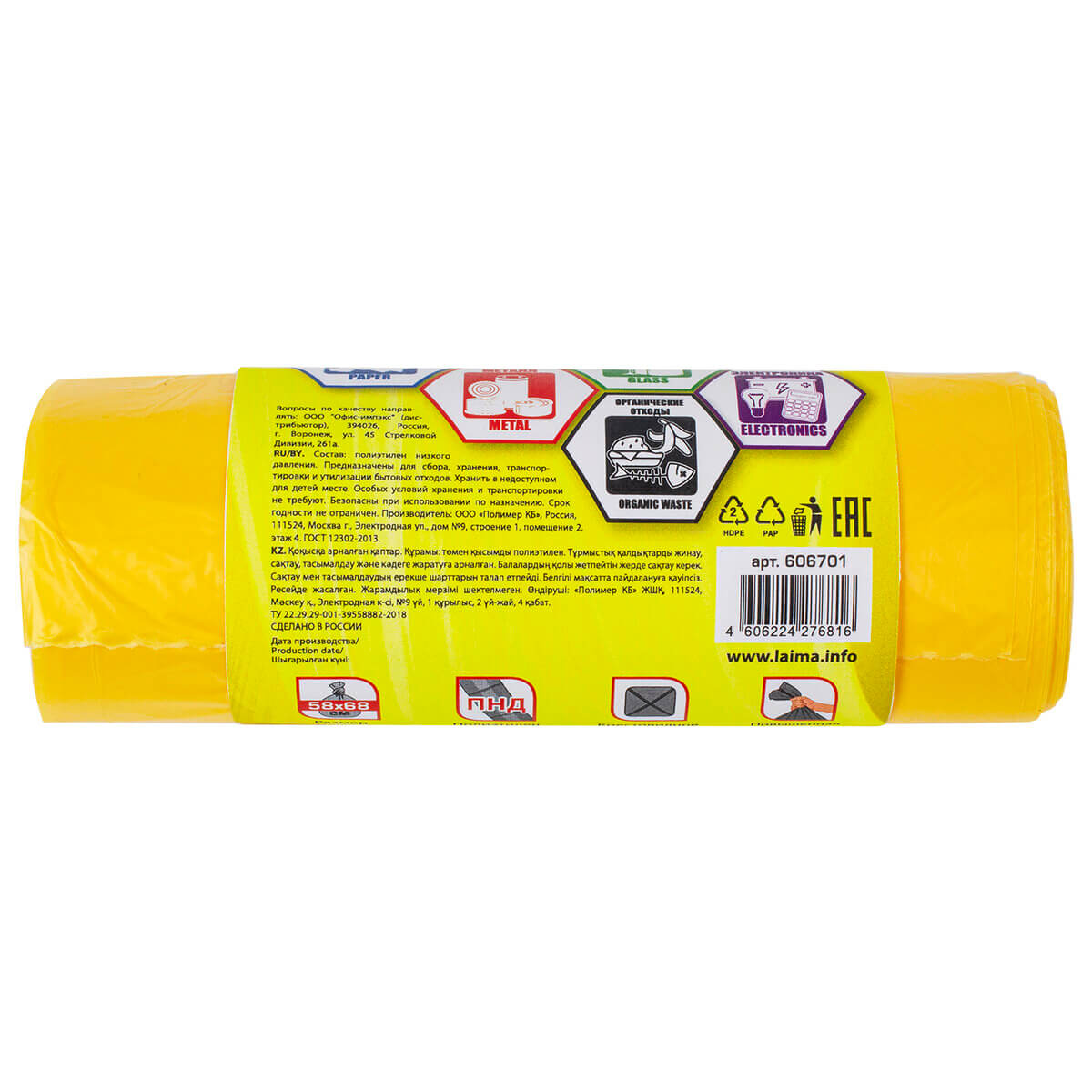 Мешки для раздельного сбора мусора ЛАЙМА: цвет, удобство, эко-инициатива. В желтом цвете они помогут разделить бытовые отходы для удобной и правильной утилизации. Ваши действия могут сделать мир чище!