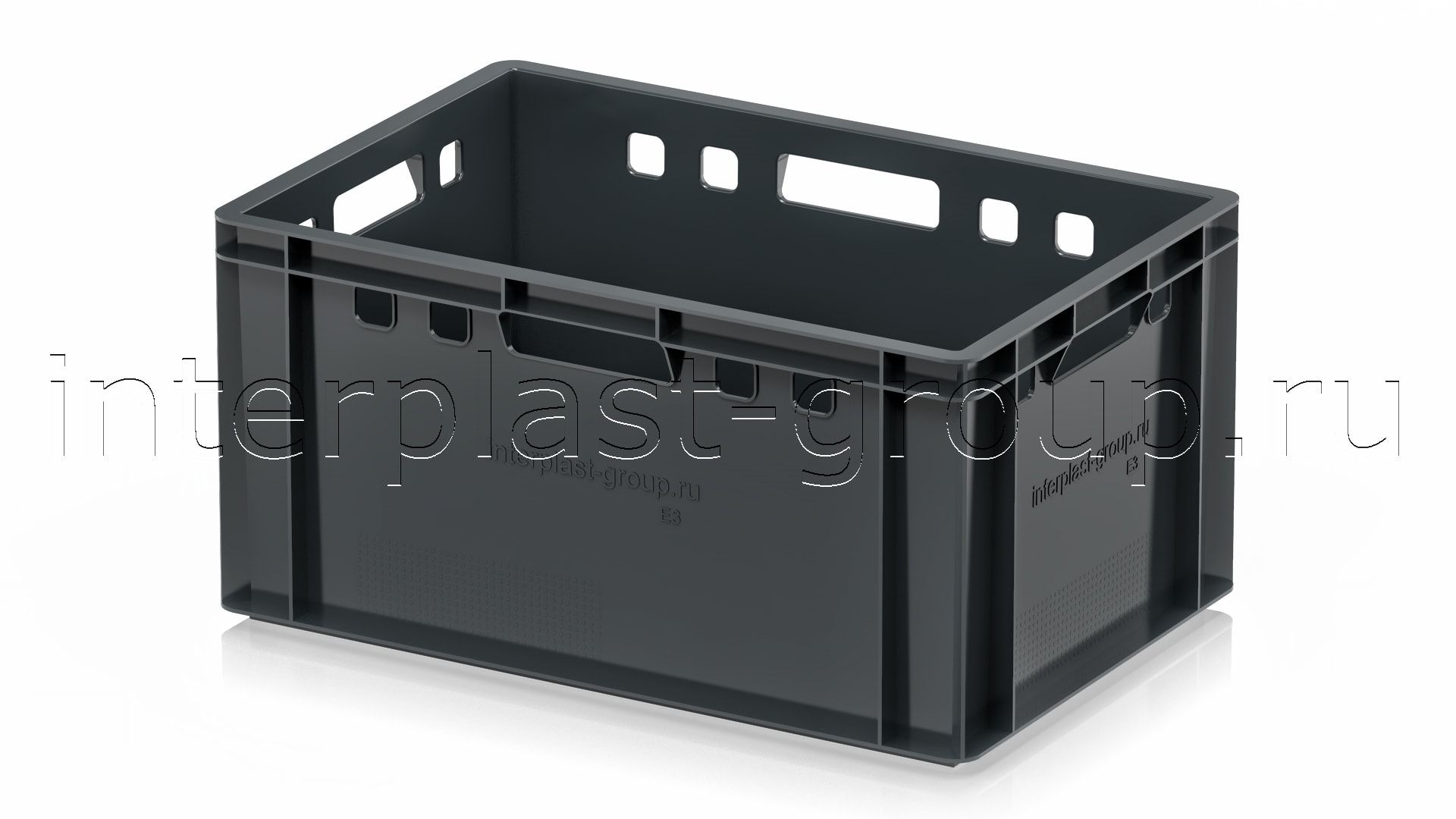 Ящик для мяса Е3 это третий по размеру в линейке мясных ящиков. Разработан специально для использования в мясной промышленности. Отлично штабелируется и собирается в единый сет со всеми ящиками серии. Изготовлен из первичного полиэтилена, и адаптирован для хранения в холодильных и морозильных камерах.
